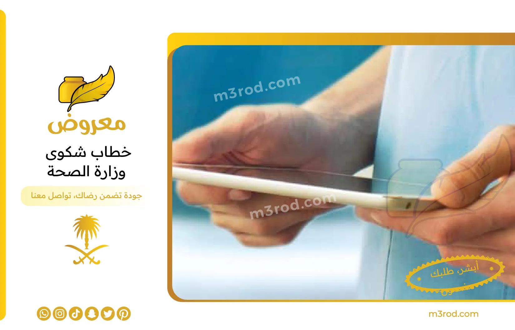 في هذا المقال بموقع معروض الذي يقدم خدمات كتابة الشكاوي والخطابات,نستعرض جميع النقاط التي تبحث عنها ليكون بمثابة دليلك الشامل بخصوص متابعة شكوى وزارة الصحة,تابع المقال الى النهاية. ولا تنسى التواصل معنا واتساب لاي استفسار .